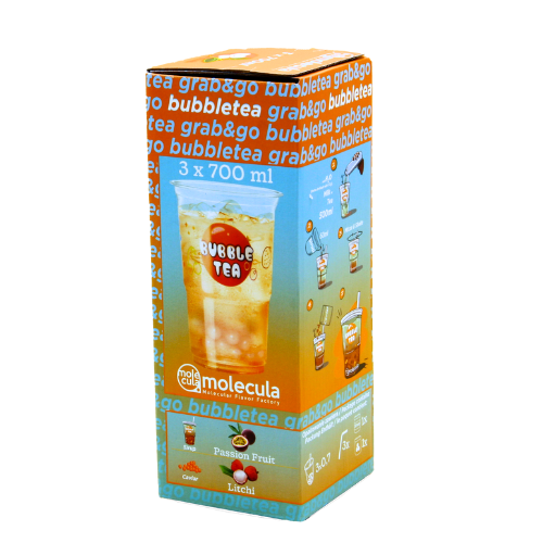 BOX2GoOrange (Molekularny kawior 210ml 180g: liczi; syrop 210ml 180g: marakuja; 3x kubki i słomki)